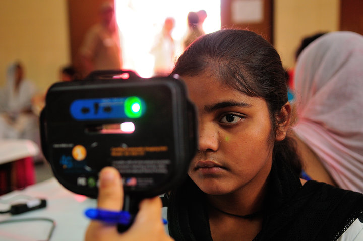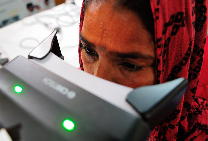 A woman is screened for an Aadhaar card on April 12, 2013, in New Delhi, India